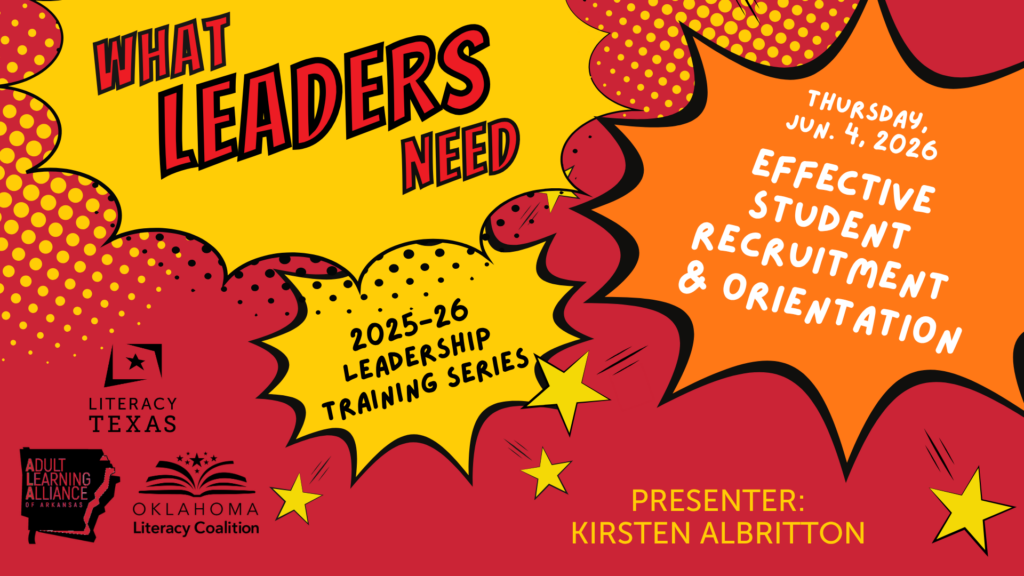 Literacy Texas provides free periodic training on basic topics that all adult and family literacy professionals should know.